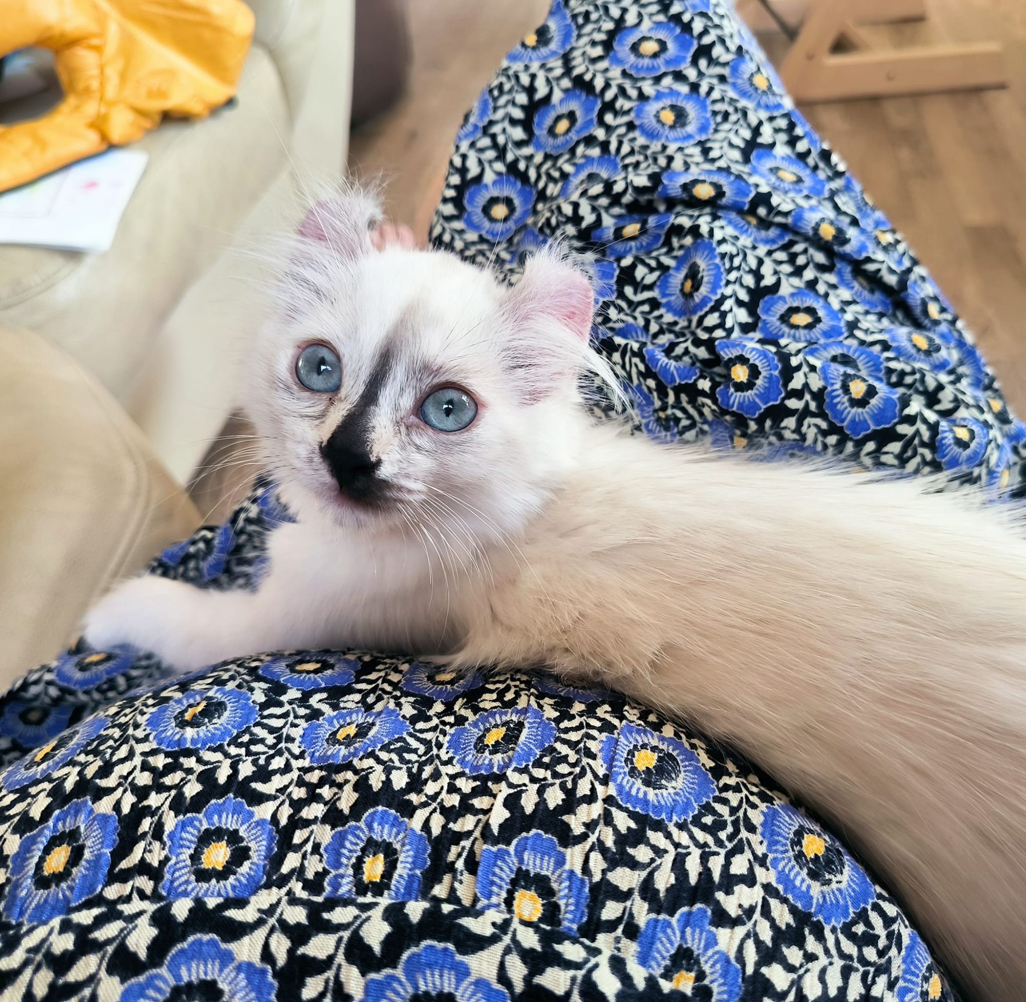 Etonnament Lyloo a de suite été à l’aise dans notre foyer malgré la présence des chiens avec lesquels elle n’avait quasiment jamais été en contact. Elle s’est également très vite attachée à nous, nous montrant la grande capacité d’adaptation de cette race extraordinaire, de vrais chats caméléons.